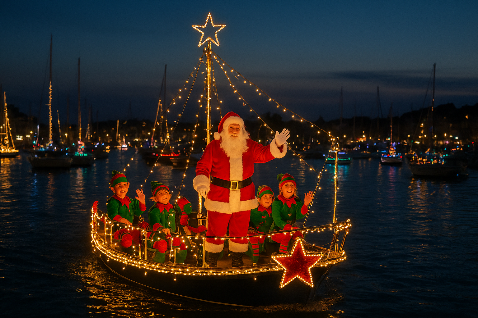 🎄Venez vivre la magie de Noël avec l’arrivée en bateau du Père Noël et de ses lutins au port de La Baule- Le Pouliguen, escortés par de magnifiques bateaux illuminés, le samedi 20 décembre à 16h30 !