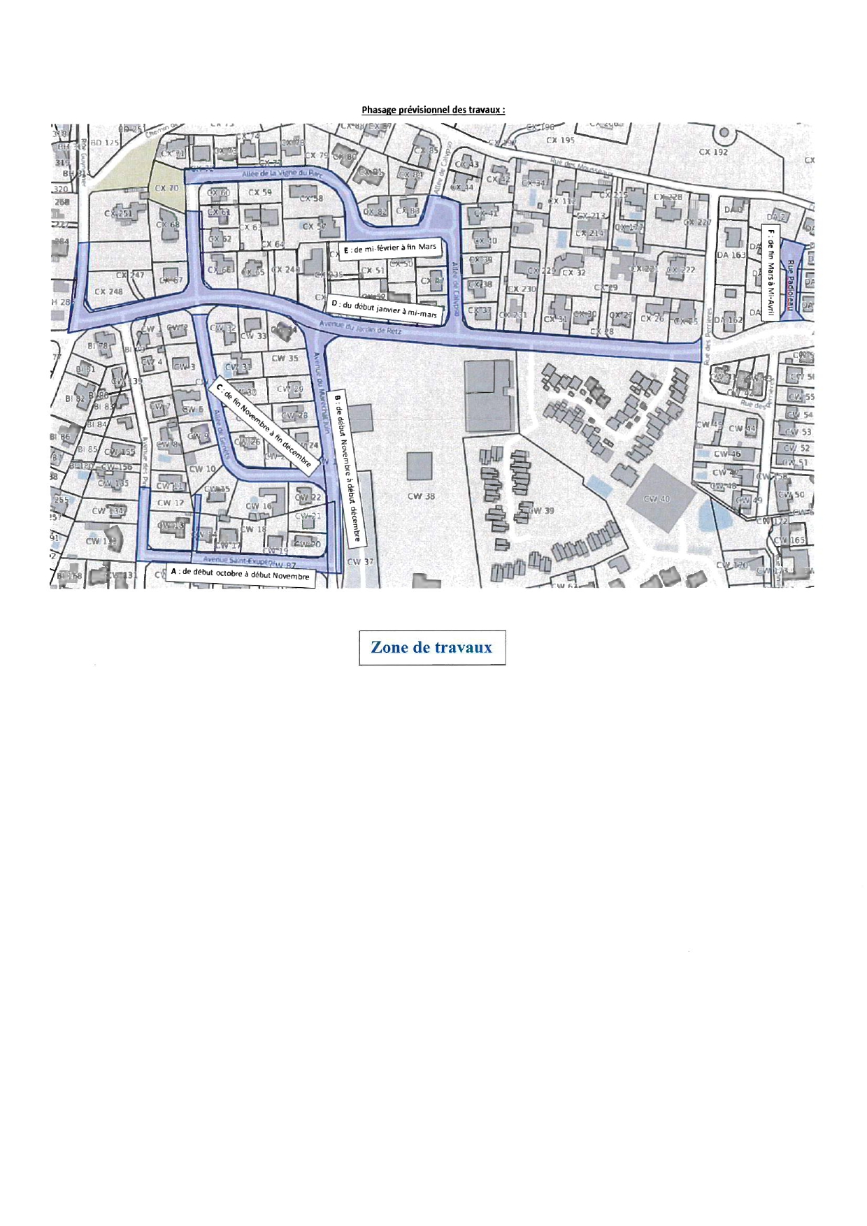 Vous trouverez en cliquant ici un plan présentant l’emprise des travaux et les phases prévisionnelles de travaux par rue.